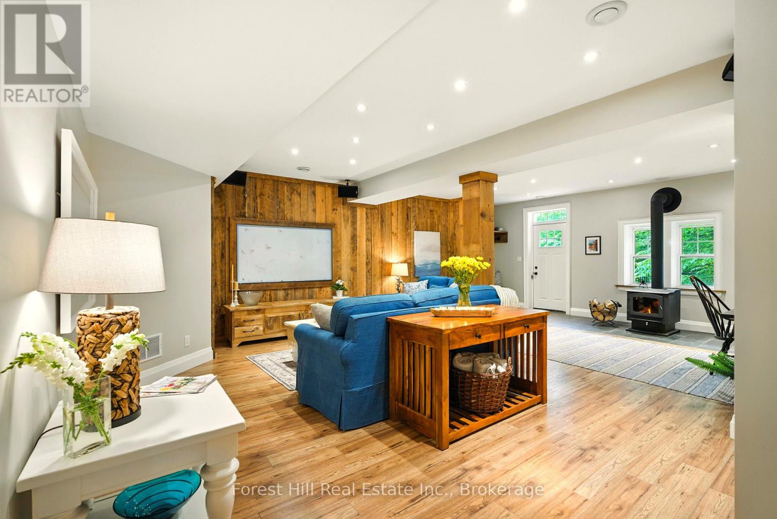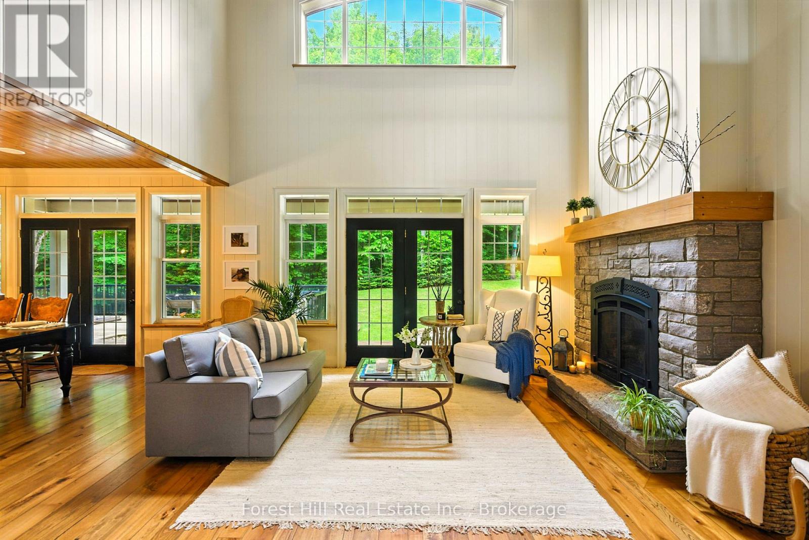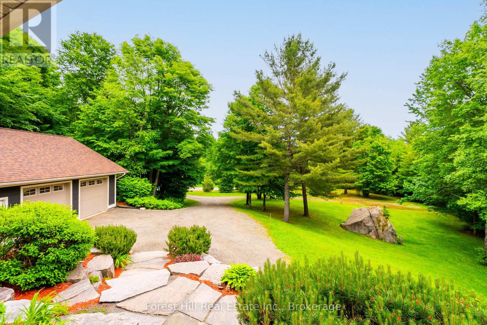 Escape to the Country! To a blissful haven in the woods. Ensconce yourselves in the wonders of a cozy retreat in nature, far from all stresses external. Peaceful, home sweet home. It's said there's no place like home - and really, there's no place like this one! A custom construction of this caliber is a rarity. Thoughtfully designed; incredibly well-built by a true craftsman, then stylishly updated by the current owners to make it even better! Meander up the gentle driveway of this pretty 4+ acres woodsy property - just 10 mins from fun, happening Huntsville - to be greeted by a stunning rock: sanctuary to a resident, cute groundhog. As you reach the heated 2+ garage, majestic landscaping, complete with lighting, draws your eye up to this gorgeous, classic country home. "Wow! This is nice" you think. The striking wood doors get you next. Wait till you open them: Warm, reclaimed elm floors; soaring great room; stone, propane fireplace; chef's kitchen + dining space with views of the gardens, saltwater pool and healing enchanted forest.You'll adore the main-floor master retreat with forest-view ensuite, as sounds of a waterfall lull you to slumber! Then a fragrant Cedar Muskoka room leads out to bubbly hot tub for festive fall dips n lux winter soaks. The backyard is an entertainer's paradise for all the friends and fam. The low maint. pool even has a heater for 3-season fun! Lofty, airy, yet cozy spaces, wired for comfort, light and sound, invite you to relax. An auto home generator says you can. The walk-out, fab entertainment level below has efficient wood stove, home gym + lovely private bed n bath for your guests. So if you're ready to say "seee-yaa!" to the city - for a place to reconnect to yourselves and one another - well, life is SO much better in Muskoka. This spot has room for you n your furry friends to roam and invisible fence to keep 'em safe! A wholesome space to live, work, or retire. Don't miss this unique home: Your fun, peaceful life awaits! (id:63576)