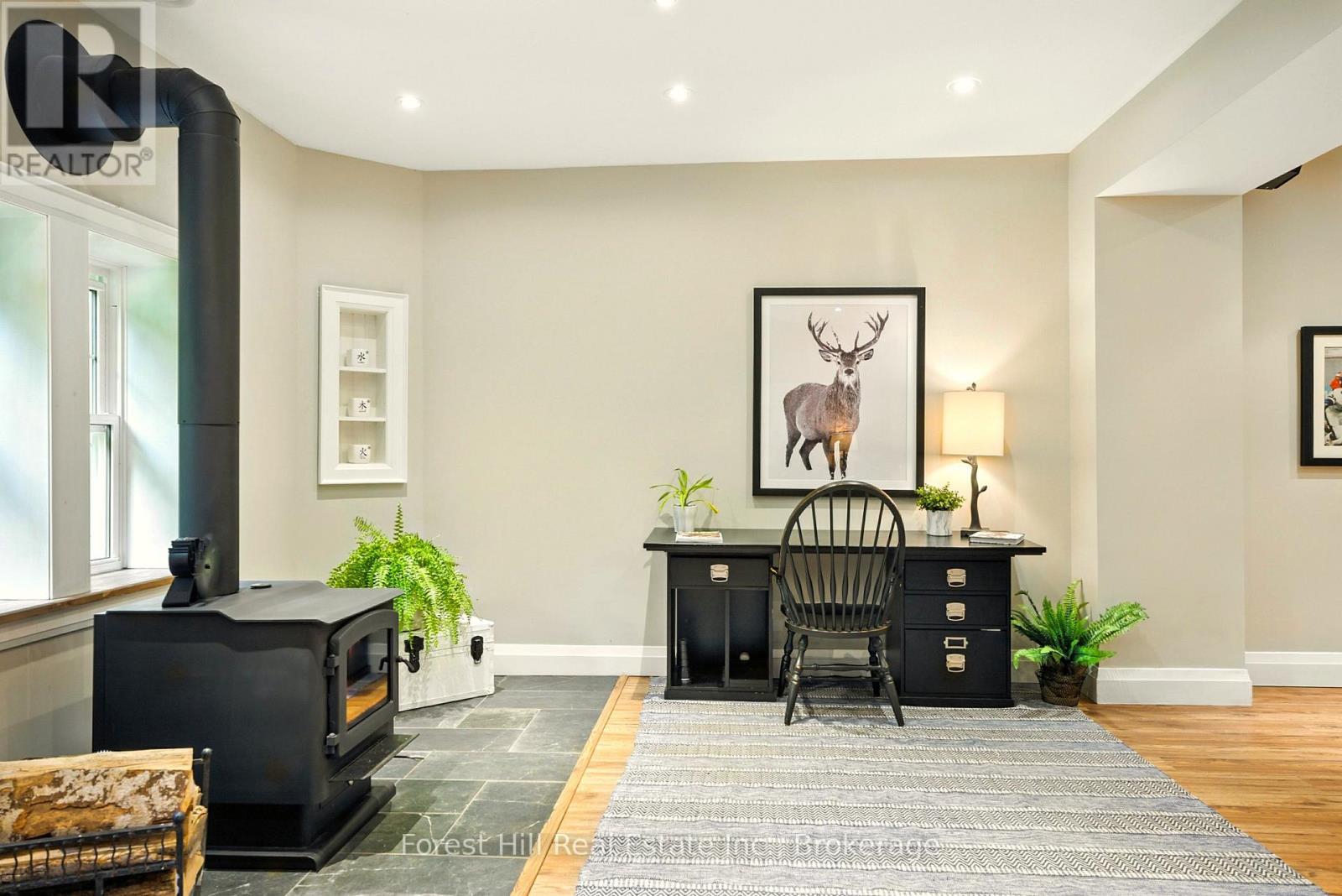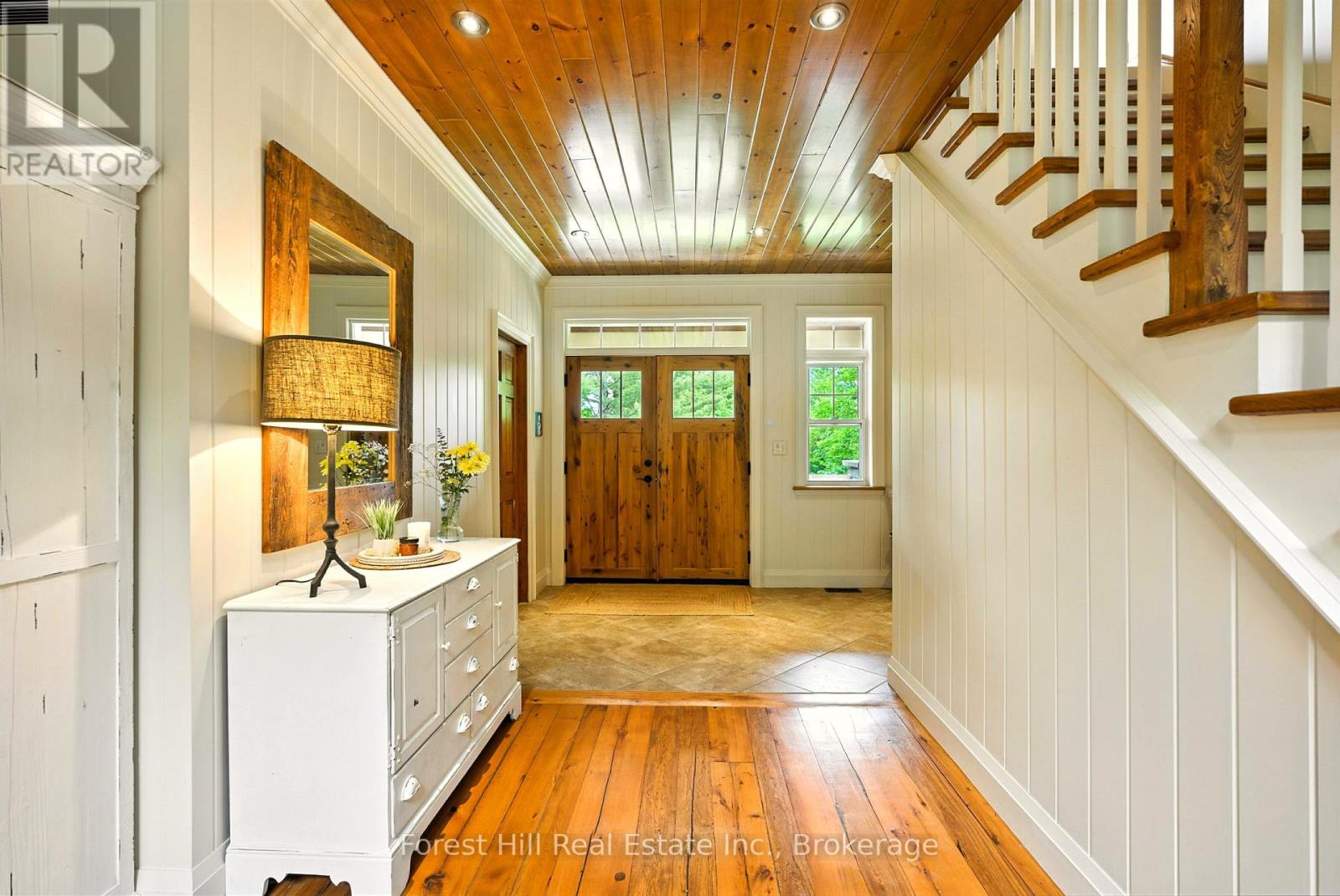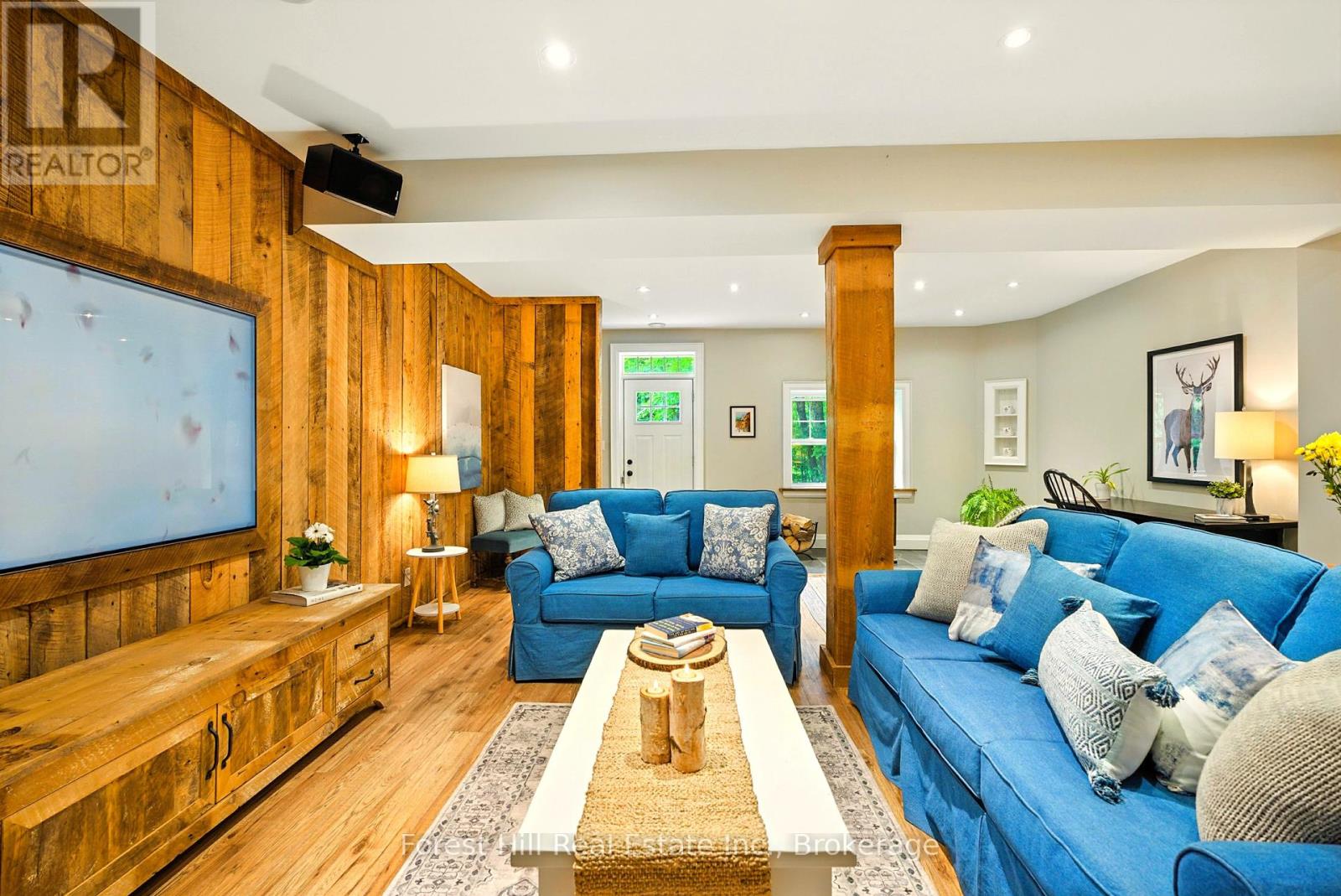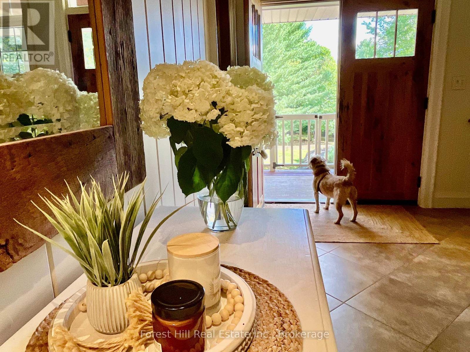 Escape to the Country! To a blissful haven in the woods. Ensconce yourselves in the wonders of a cozy retreat in nature, far from all stresses external. Peaceful, home sweet home. It's said there's no place like home - and really, there's no place like this one! A custom construction of this caliber is a rarity. Thoughtfully designed; incredibly well-built by a true craftsman, then stylishly updated by the current owners to make it even better! Meander up the gentle driveway of this pretty 4+ acres woodsy property - just 10 mins from fun, happening Huntsville - to be greeted by a stunning rock: sanctuary to a resident, cute groundhog. As you reach the heated 2+ garage, majestic landscaping, complete with lighting, draws your eye up to this gorgeous, classic country home. "Wow! This is nice" you think. The striking wood doors get you next. Wait till you open them: Warm, reclaimed elm floors; soaring great room; stone, propane fireplace; chef's kitchen + dining space with views of the gardens, saltwater pool and healing enchanted forest.You'll adore the main-floor master retreat with forest-view ensuite, as sounds of a waterfall lull you to slumber! Then a fragrant Cedar Muskoka room leads out to bubbly hot tub for festive fall dips n lux winter soaks. The backyard is an entertainer's paradise for all the friends and fam. The low maint. pool even has a heater for 3-season fun! Lofty, airy, yet cozy spaces, wired for comfort, light and sound, invite you to relax. An auto home generator says you can. The walk-out, fab entertainment level below has efficient wood stove, home gym + lovely private bed n bath for your guests. So if you're ready to say "seee-yaa!" to the city - for a place to reconnect to yourselves and one another - well, life is SO much better in Muskoka. This spot has room for you n your furry friends to roam and invisible fence to keep 'em safe! A wholesome space to live, work, or retire. Don't miss this unique home: Your fun, peaceful life awaits! (id:63576)