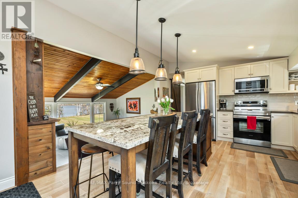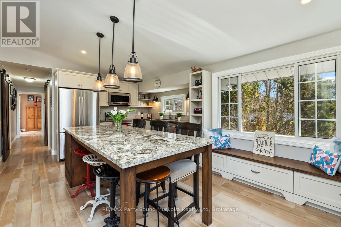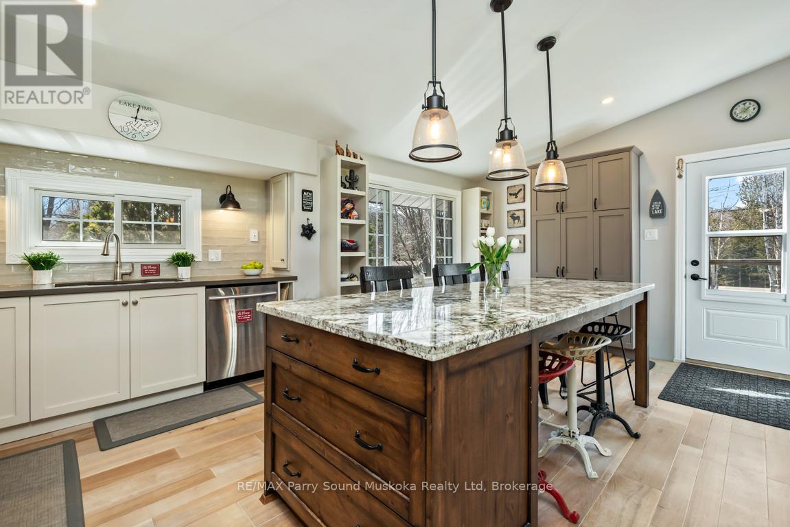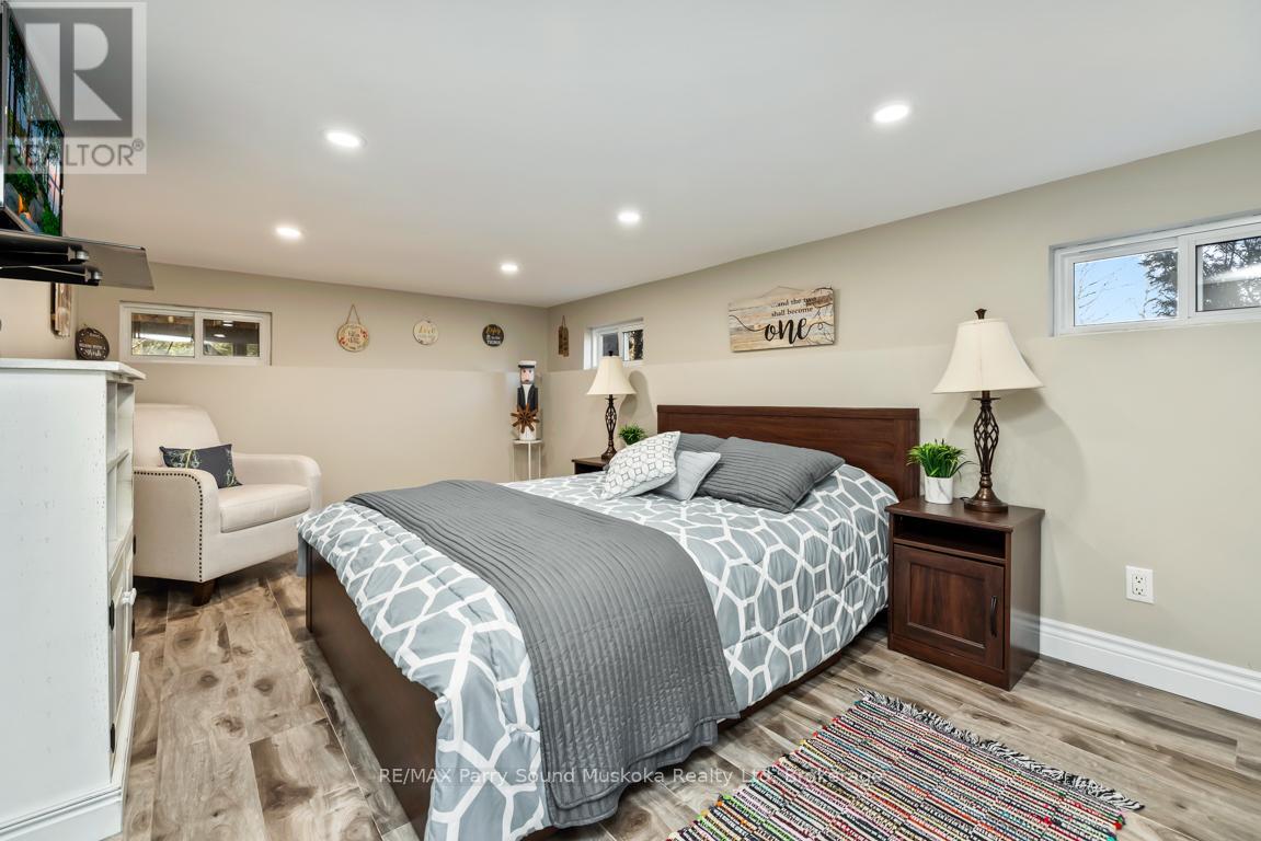 LAKE MANITOUWABING 4 SEASON GEM! 170 ft WATERFRONT! SANDY BEACH to Water's edge, Easy access level lot ideal for all ages, This TURNKEY 4 season cottage or home is made for Family Fun! Enjoy sunny days outside playing on the beach, on the volleyball court, Peaceful protected bay is ideal to paddleboard, kayak & canoe, Explore Boating on Lake Manitouwabing for hours filled with Great swimming, fishing enjoyment, The fully winterized 3 bedroom, 2 bathroom gem boasts Custom Kitchen w granite counters, Large island, Stainless appliances, Sunken Great Room enhanced with vaulted ceilings, Cozy up to the gas fireplace, Built in cabinetry, Multiple walkouts to sundecks, Work from the cottage in the den w high speed internet, Relax in the Muskoka/Sunroom Room or downstairs in the finished Lower level featuring guest rooms, 2nd bath, Outdoor relaxation is yours with multiple walkouts to sundecks, Covered patio, Extended family & kids will love the Charming bunkie (sleeps 4), DETACHED DOUBLE GARAGE 2021, New shingles 2022, Drilled well w filtration system, New shingles 2022, Extensive renovations done in '05 & '14, This Lake House is move in ready & includes everything you need to begin your COTTAGE LIFE! (id:63576)