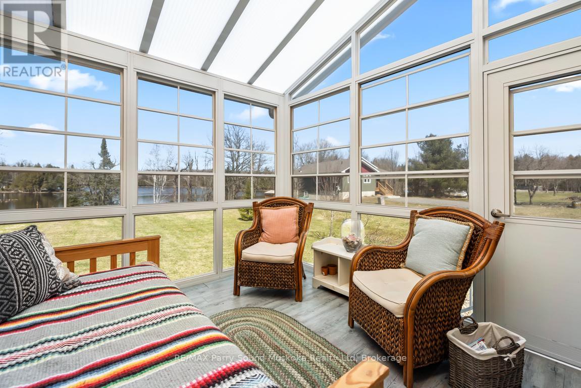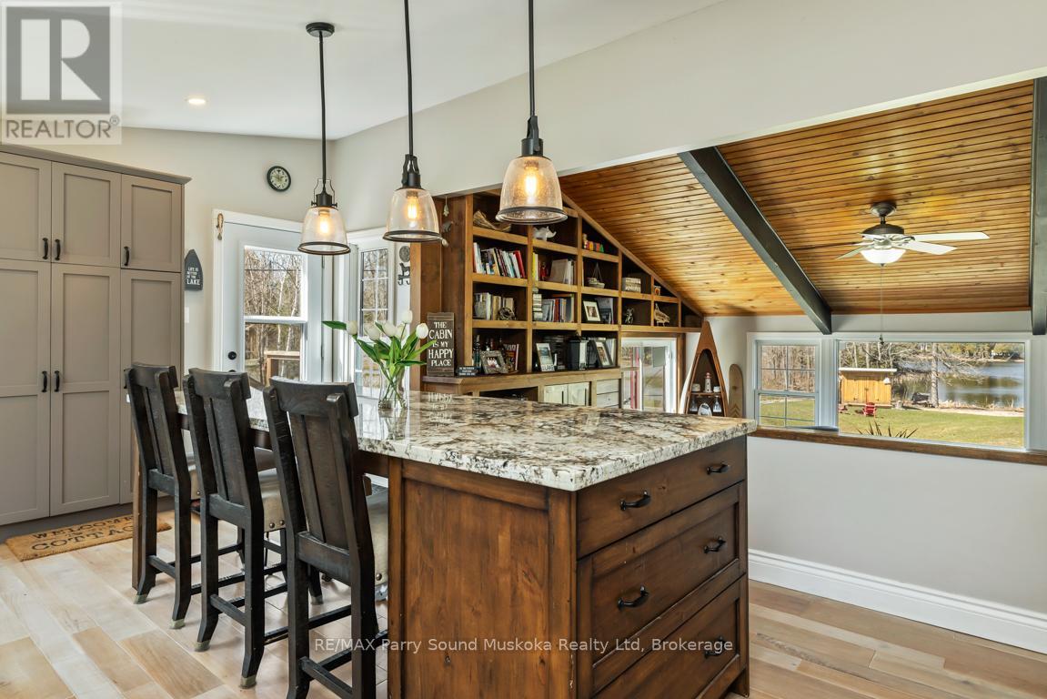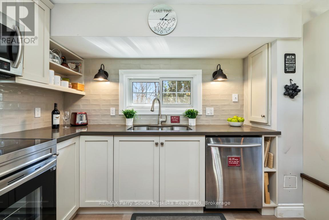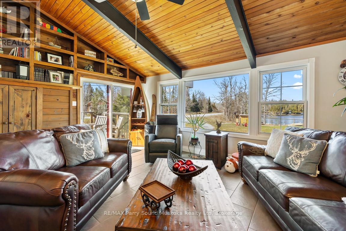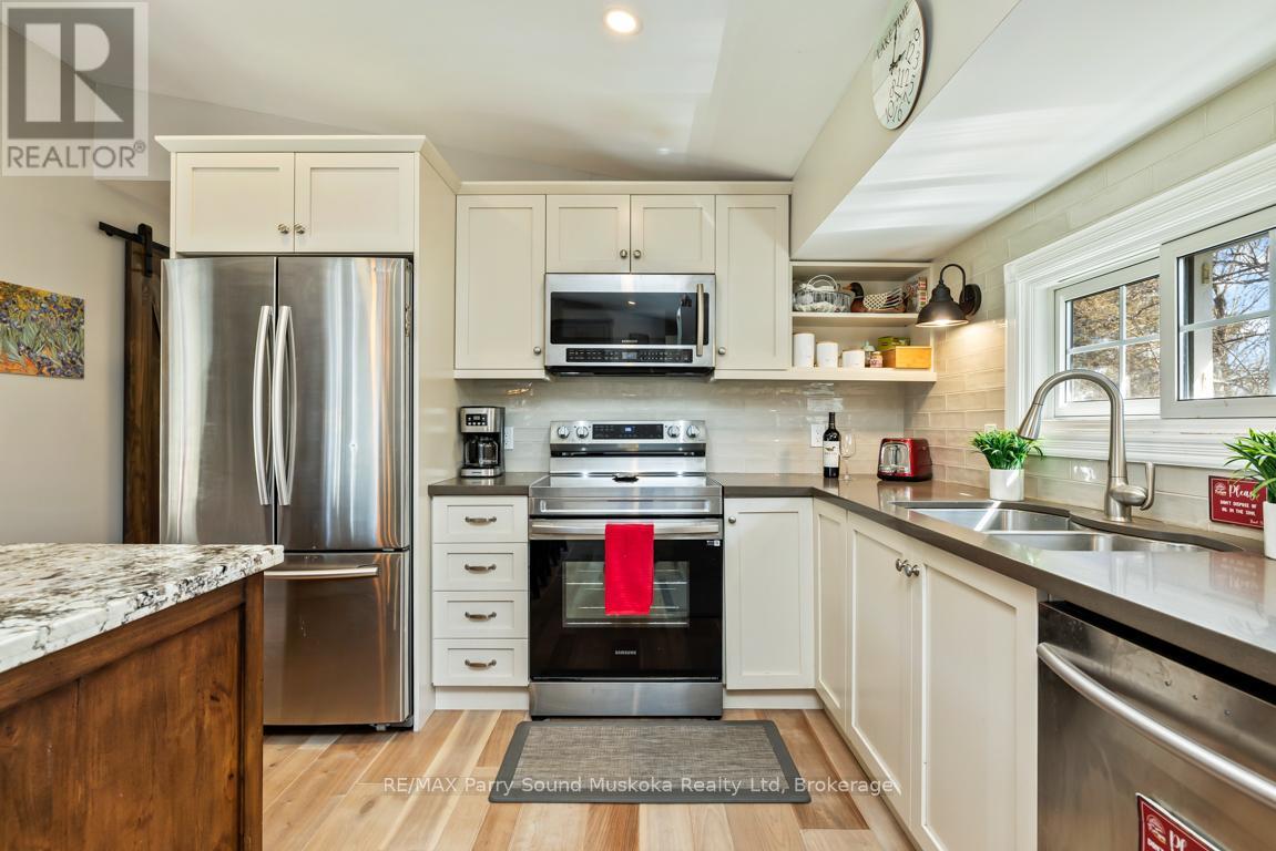 LAKE MANITOUWABING 4 SEASON GEM! 170 ft WATERFRONT! SANDY BEACH to Water's edge, Easy access level lot ideal for all ages, This TURNKEY 4 season cottage or home is made for Family Fun! Enjoy sunny days outside playing on the beach, on the volleyball court, Peaceful protected bay is ideal to paddleboard, kayak & canoe, Explore Boating on Lake Manitouwabing for hours filled with Great swimming, fishing enjoyment, The fully winterized 3 bedroom, 2 bathroom gem boasts Custom Kitchen w granite counters, Large island, Stainless appliances, Sunken Great Room enhanced with vaulted ceilings, Cozy up to the gas fireplace, Built in cabinetry, Multiple walkouts to sundecks, Work from the cottage in the den w high speed internet, Relax in the Muskoka/Sunroom Room or downstairs in the finished Lower level featuring guest rooms, 2nd bath, Outdoor relaxation is yours with multiple walkouts to sundecks, Covered patio, Extended family & kids will love the Charming bunkie (sleeps 4), DETACHED DOUBLE GARAGE 2021, New shingles 2022, Drilled well w filtration system, New shingles 2022, Extensive renovations done in '05 & '14, This Lake House is move in ready & includes everything you need to begin your COTTAGE LIFE! (id:63576)